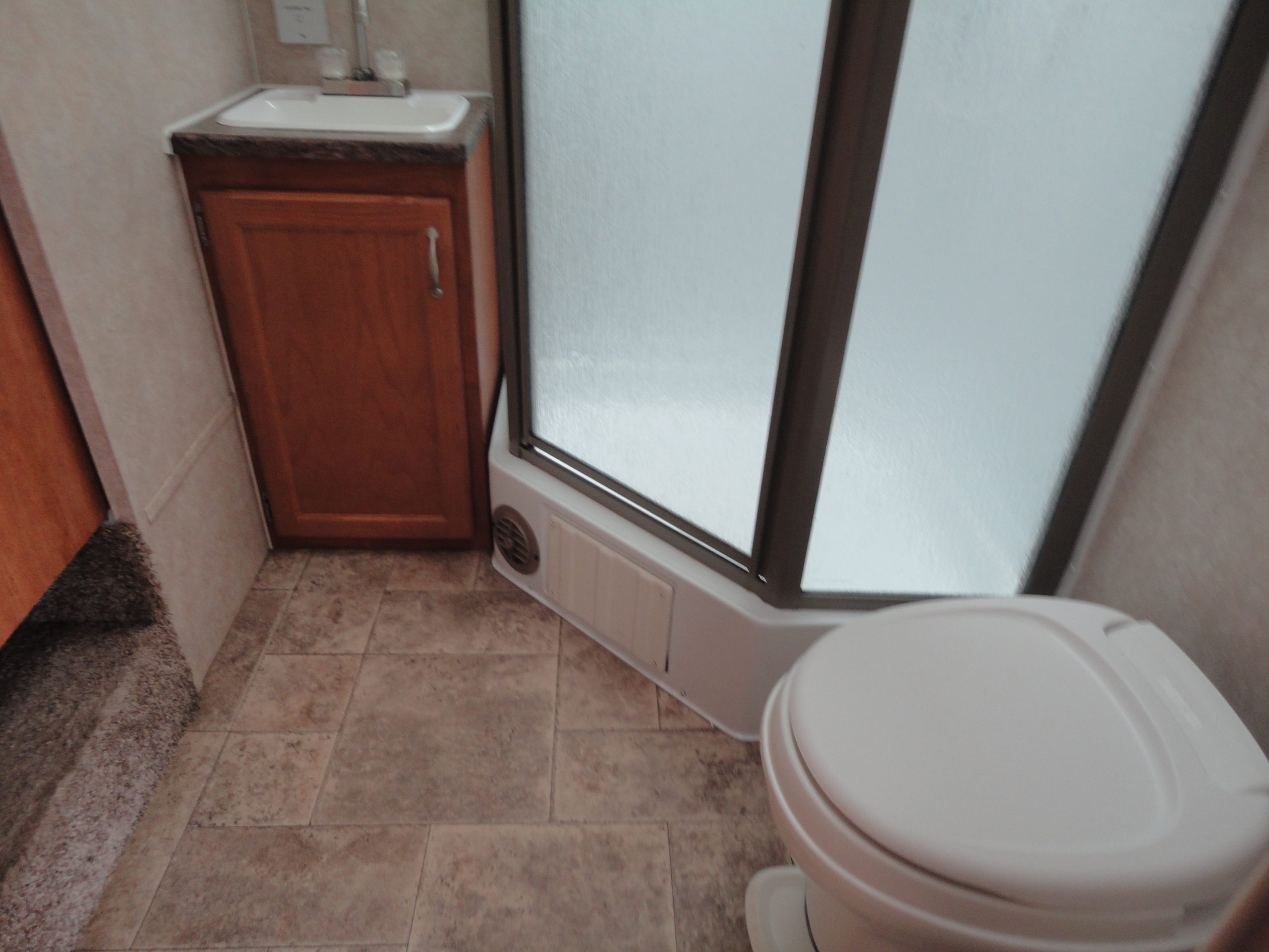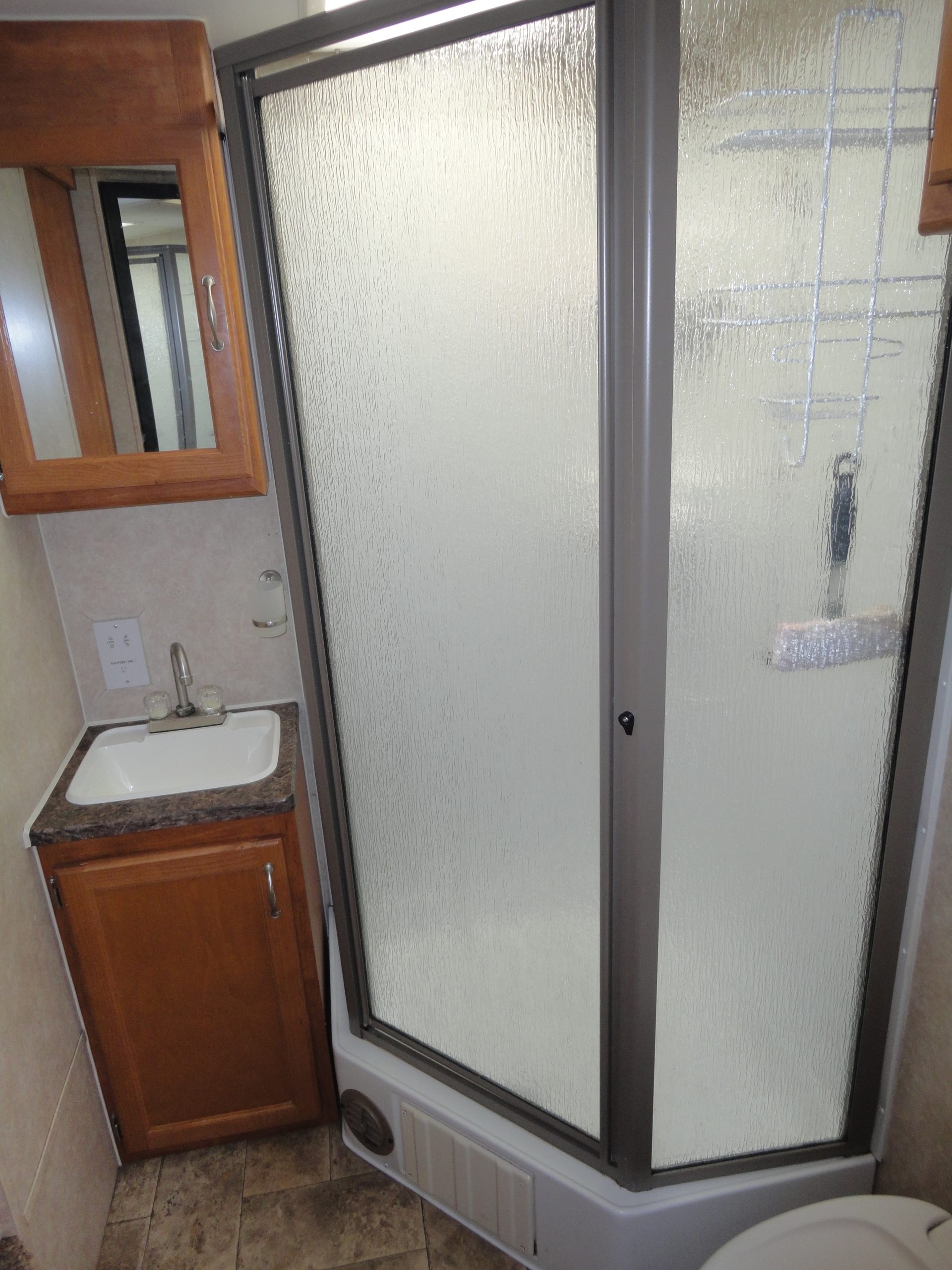 Full enclosed bathroom with full height shower (not a tiny caravan showers)
