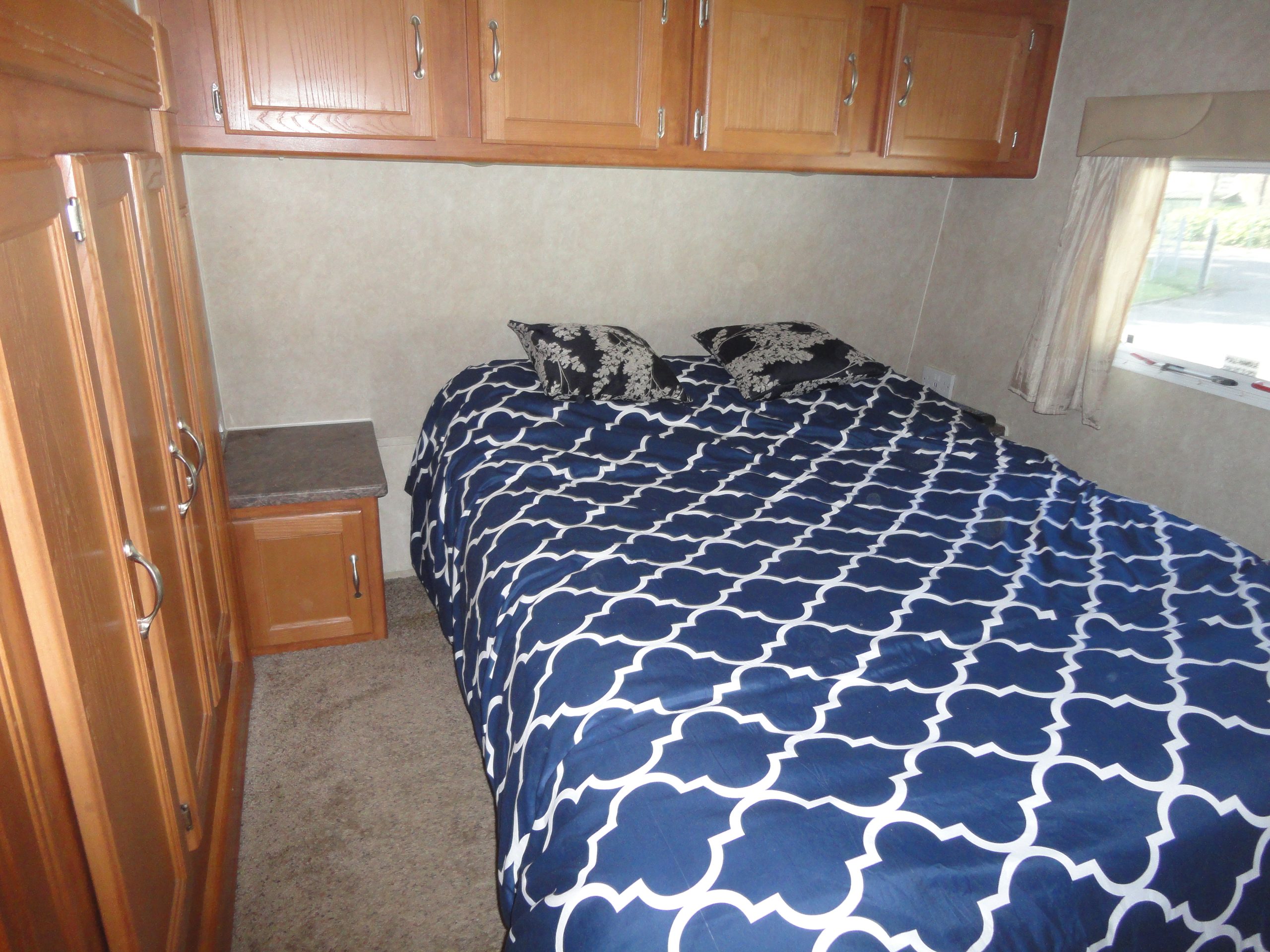 Another slide-out provides a large wardrobe in the bedroom. This has a high end finish throughout and lightweight.